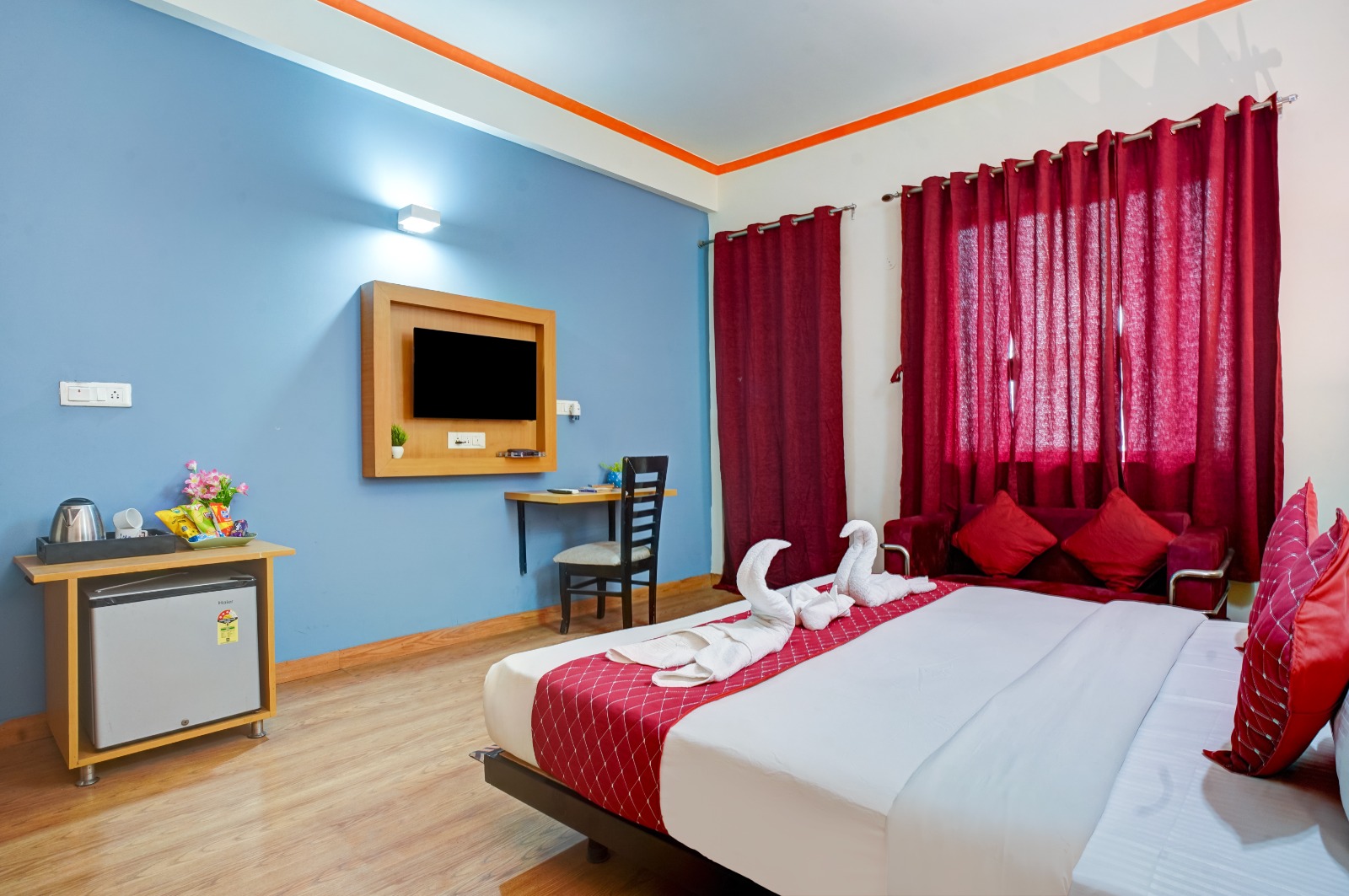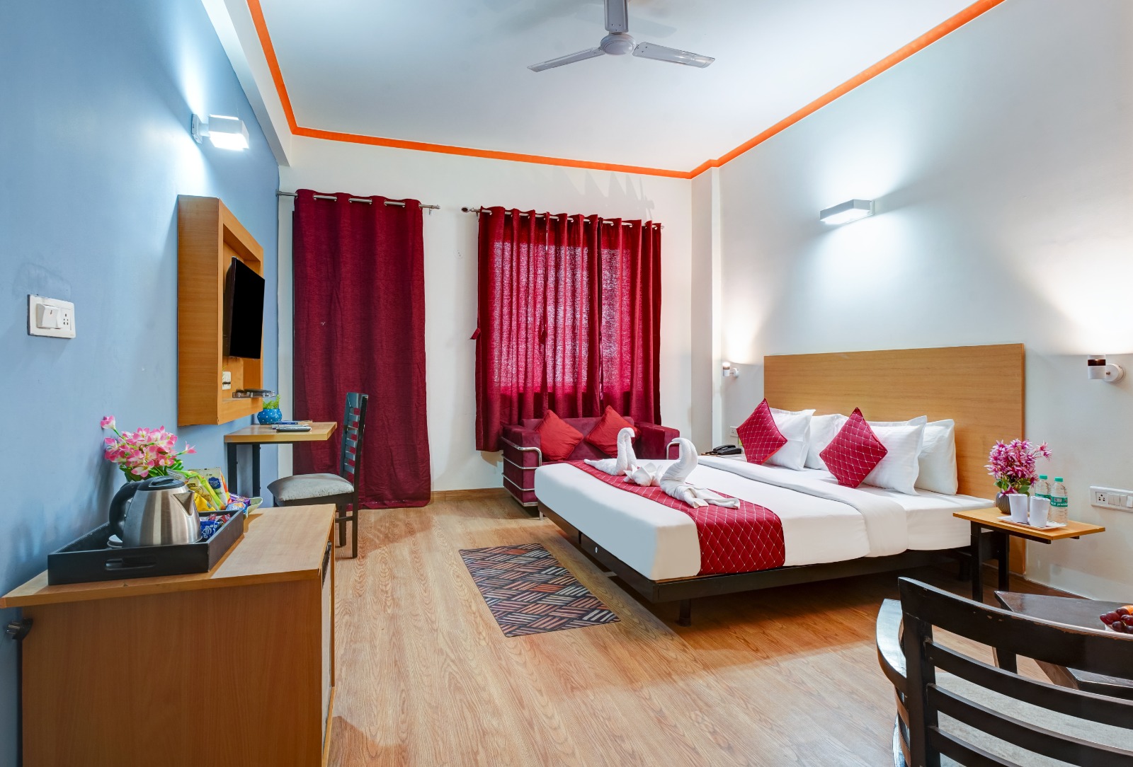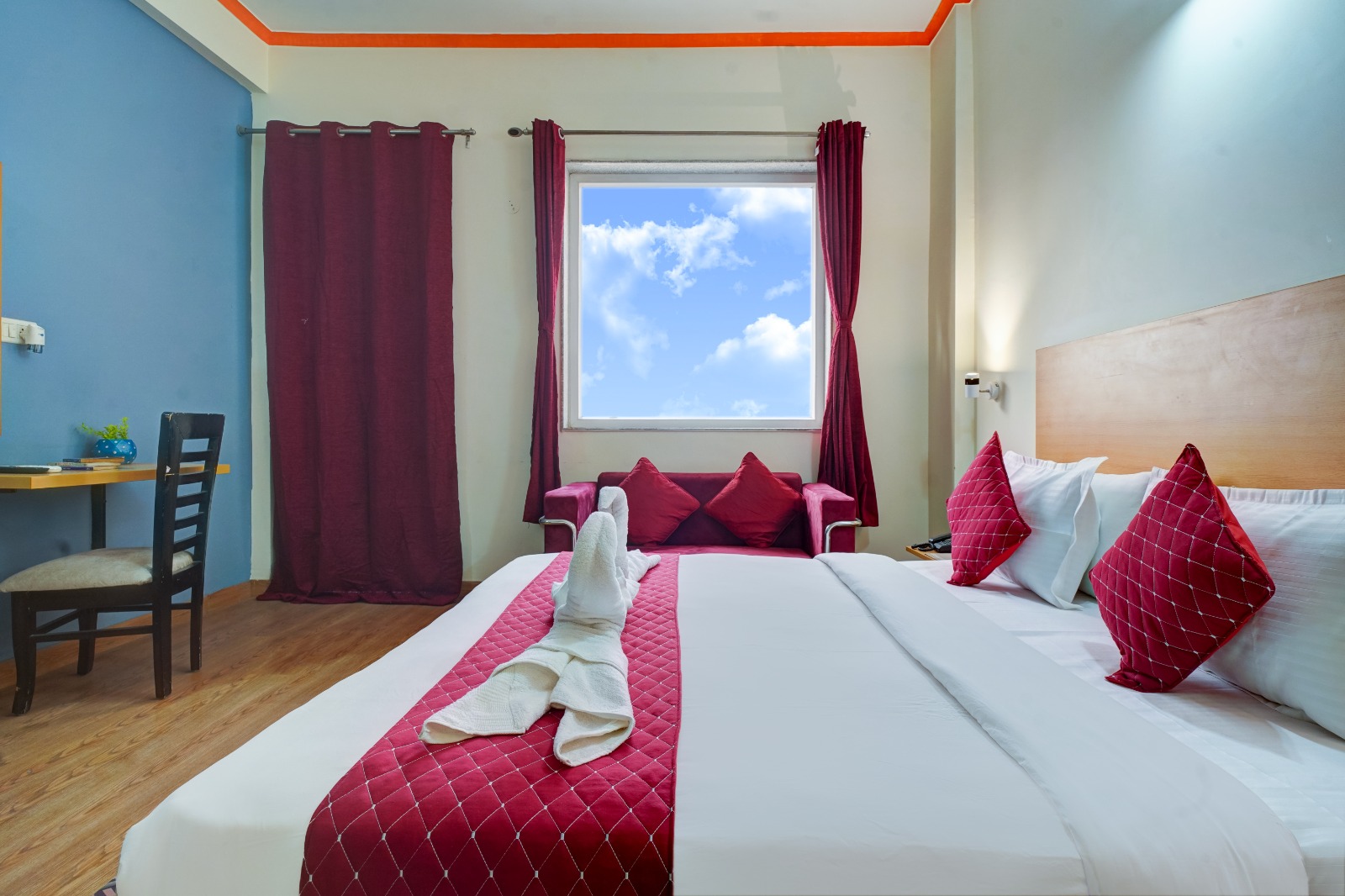Our Deluxe Rooms provide a serene and elegant space for relaxation. Featuring modern décor, comfortable beds, a work desk, and an en-suite bathroom, these rooms are perfect for both business and leisure travelers.